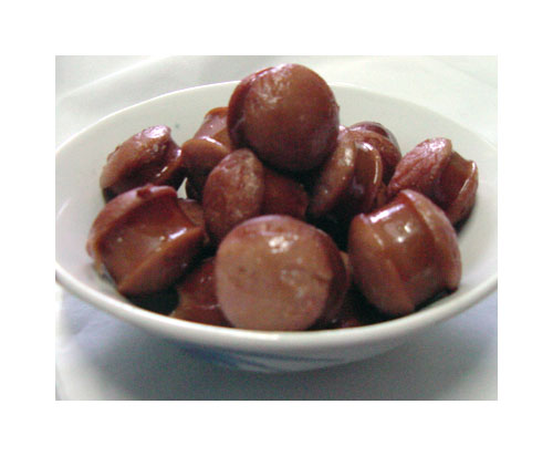 นี่คือใส้กรอกรมควันกูว่าท่อนมันใหญ่ไปว่ะ เลยเอามาหั่นซะหน่อยแล้วก็เอาลงทอดในกะทะ ปิดฝาจนสุกแบบนี้ แล้วก็เทใส่ชามตาไก่ แล้วก็ยกเอามาแดกกะแพนเค้ก