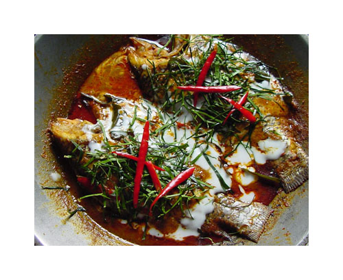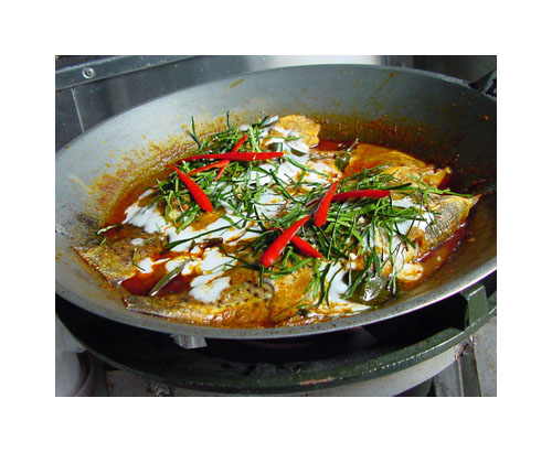 มีเวบการเมืองเวบนึง มีคนมาตั้งกระทู้ว่าจับปลาหมอมาได้แล้วเอามาทำฉู่ฉี่ เค้าสอนวิธีทำให้ด้วย แถมถ่ายรูปมาแปะตั้งหลายรูป ก็เลยสนใจอยากหัดทำมั่ง ก็เลยได้แบบนี้